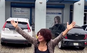 Santo Domingo. – “¡No me atraque, Edesur!”, exclamó este jueves la actriz y comediante Cheddy García al arrodillarse frente a las oficinas de Edesur Dominicana, en una inusual protesta por el aumento de los precios de la factura eléctrica.