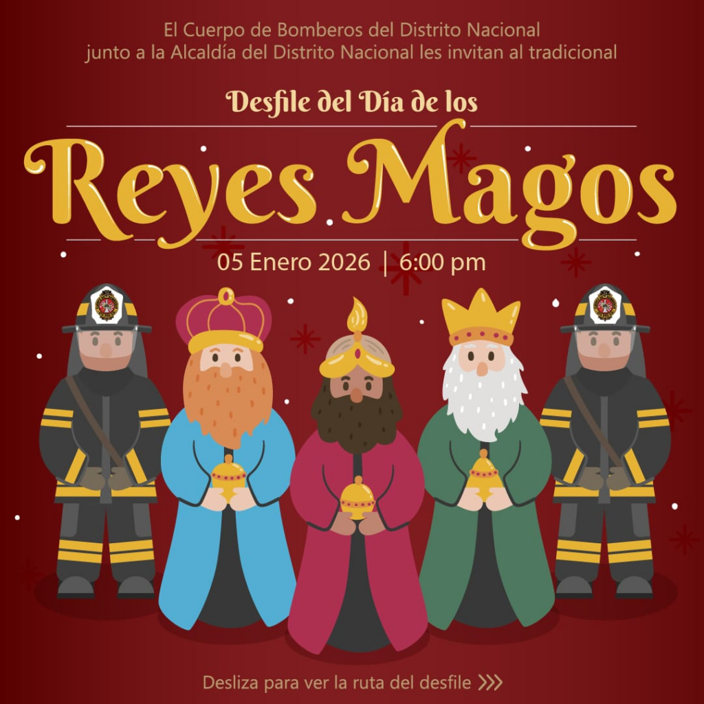Santo Domingo, DN – El Cuerpo de Bomberos del Distrito Nacional, con el apoyo de la Alcaldía del Distrito Nacional, invitó a participar en su tradicional desfile del Día de los Reyes Magos que se llevará a cabo este lunes 05 de enero, iniciando en la estación de la avenida Mella.