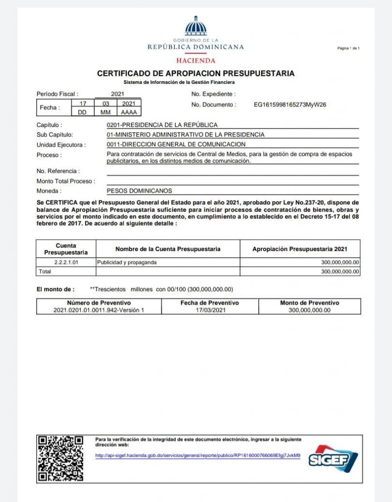 Según el comunicado, esta acción busca eficiencia y transparencia en esta gestión presupuestaria para contratación de servicios de publicidad institucional.