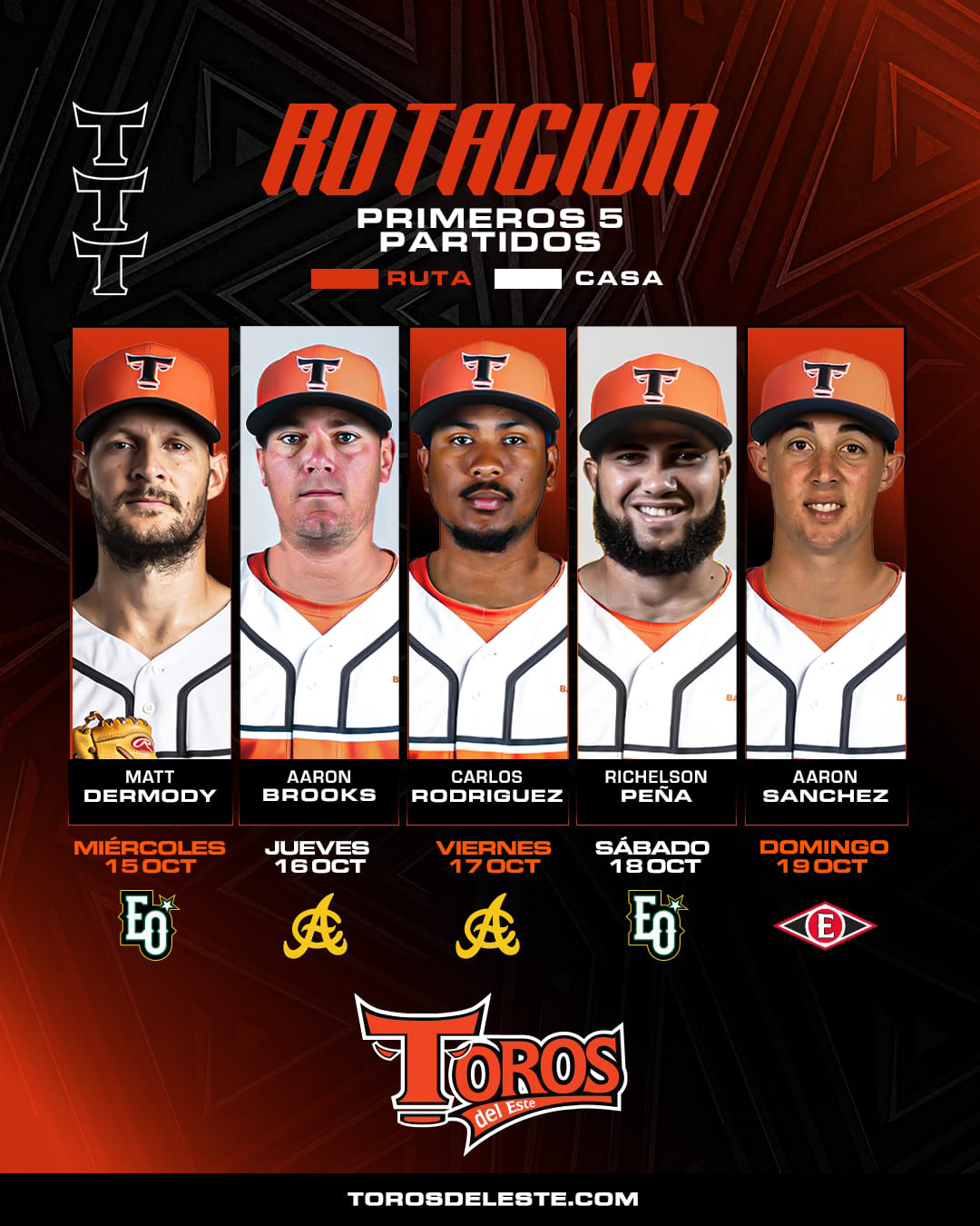 La Romana. – Los Toros del Este anunciaron su rotación abridora para el inicio de la temporada 2025-26, dedicada al inmortal Juan Marichal.