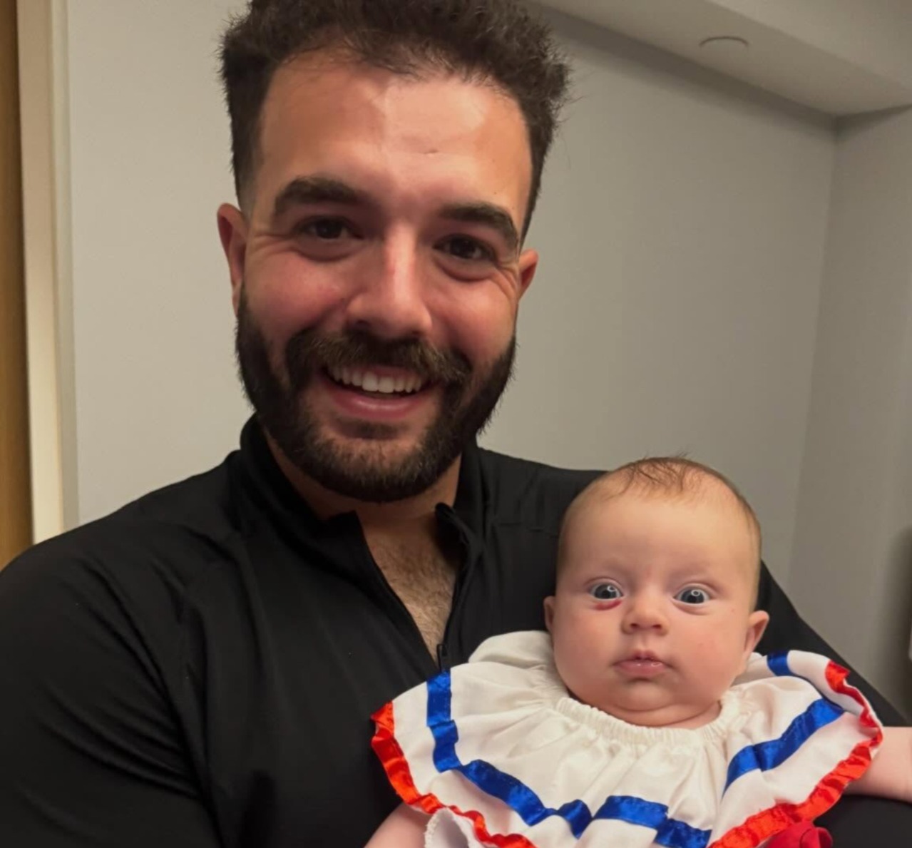 Entre las fotos publicadas, una llamó especialmente la atención: Wells aparece junto a su pequeña hija, quien luce un traje de “dominicanita”, en una imagen que generó reacciones entre seguidores del pelotero.