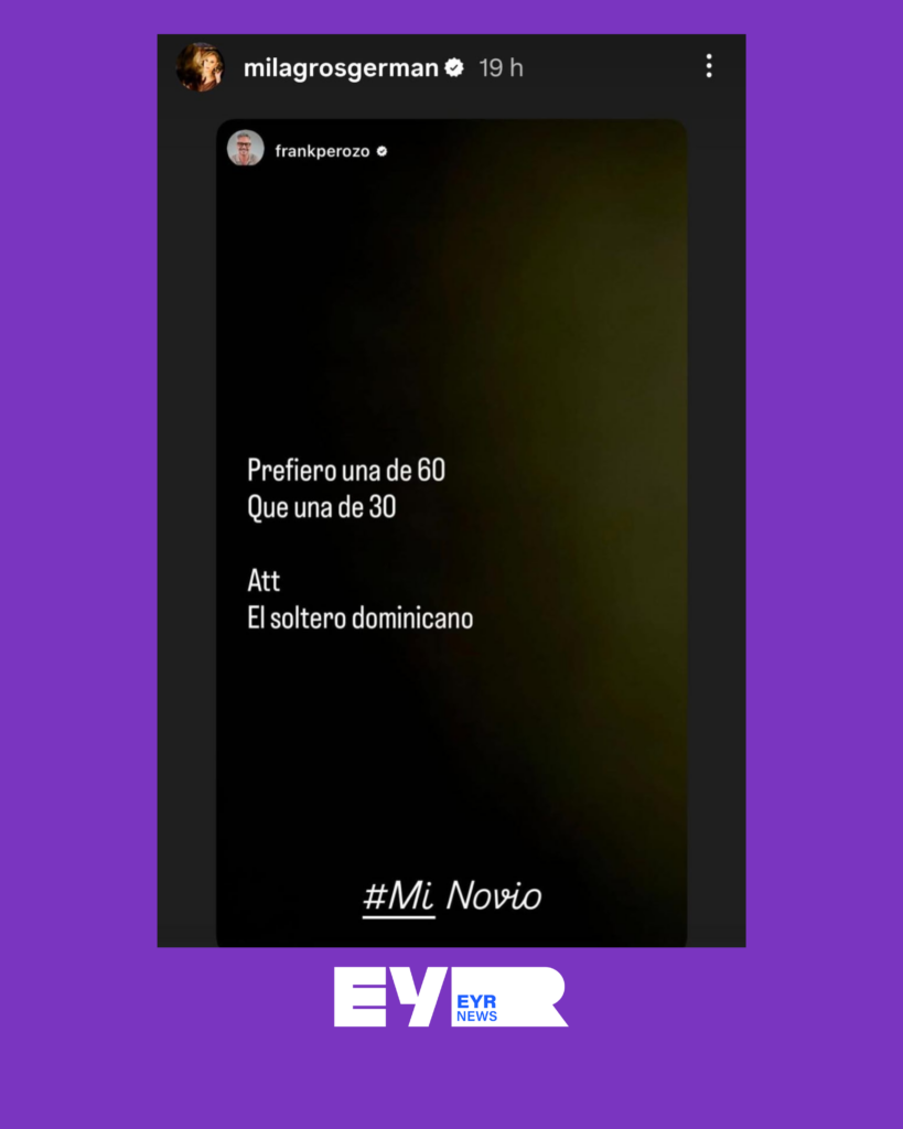 La publicación no pasó desapercibida. Poco después, la comunicadora Milagros Germán compartió la historia del actor y añadió una breve respuesta que generó comentarios entre los usuarios: “Mi novio”.