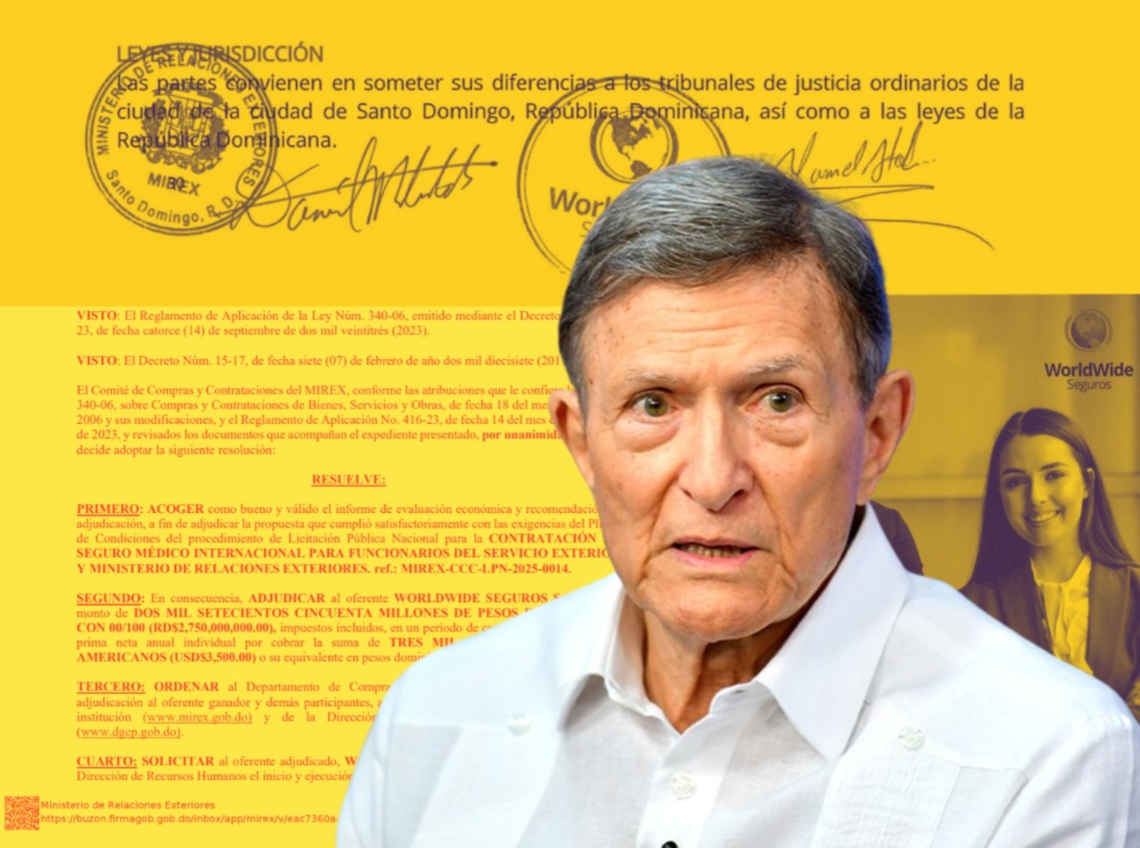 Santo Domingo. – El Ministerio de Relaciones Exteriores (MIREX) explicó que el contrato de seguro médico internacional adjudicado a WorldWide Seguros por un monto de RD$2,750 millones responde a la corrección de distorsiones administrativas heredadas y al cumplimiento estricto de la Ley núm. 630-16, que garantiza este beneficio a todos los miembros del Servicio Exterior Dominicano (S.E.) y sus dependientes.