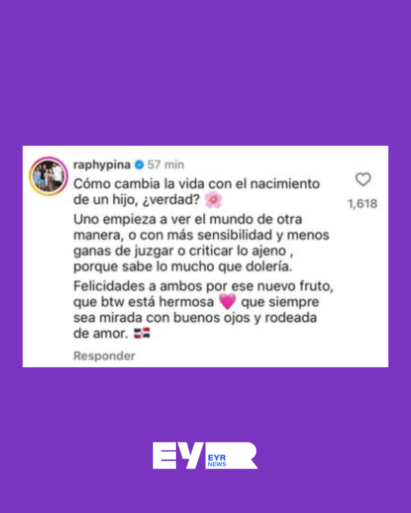 Santo Domingo. – El productor musical Raphy Pina provocó reacciones inmediatas en redes sociales tras dejar un comentario en la publicación de la cantante dominicana La Materialista, quien presentó este viernes a su hija Emery por primera vez.