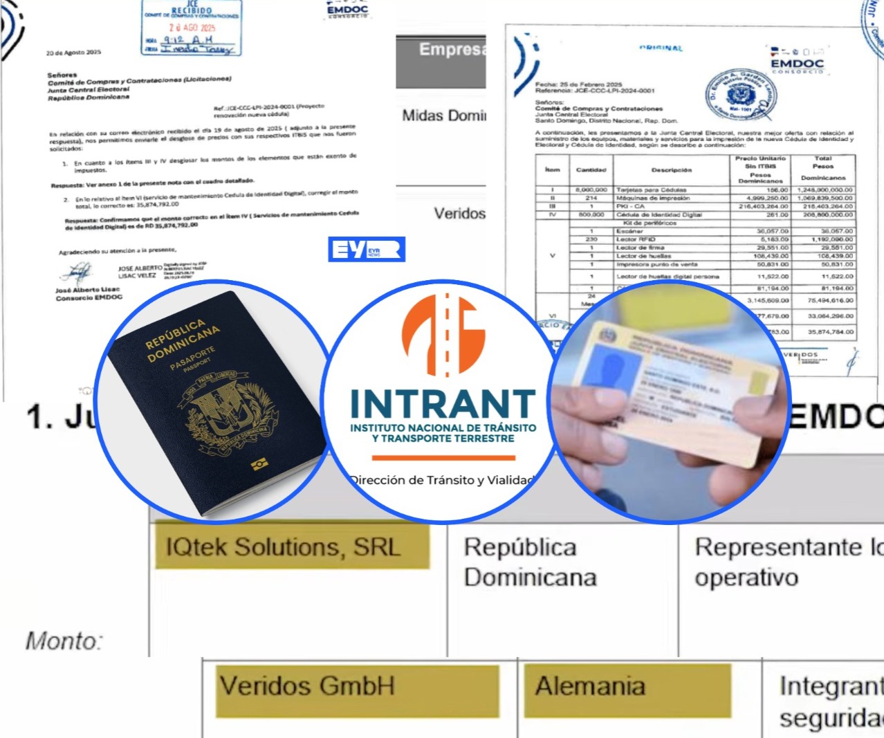 En total, las instituciones involucradas —Junta Central Electoral (JCE), Dirección General de Pasaportes (DGP) y Instituto Nacional de Tránsito y Transporte Terrestre (Intrant)— han adjudicado contratos que, sumados, superan los RD$11,000 millones.