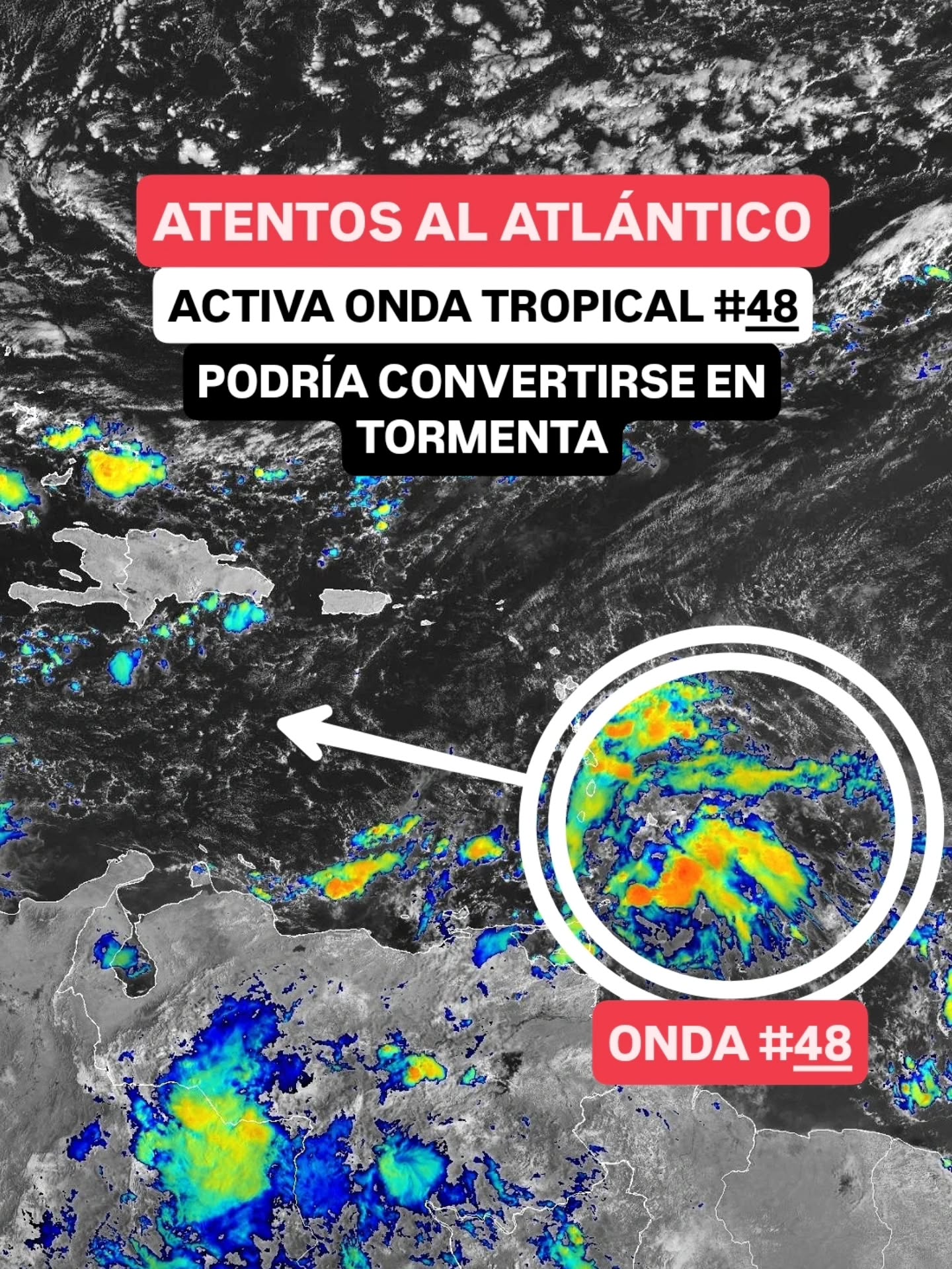 Santo Domingo. – El meteorólogo Jean Suriel informó que la onda tropical número 48 ha mostrado una actividad más intensa en el Atlántico durante las últimas 24 horas, con una estructura nubosa mejor definida. El fenómeno se aproxima a las Antillas Menores y, de acuerdo con los modelos de pronóstico, transitará directamente por las aguas del Mar Caribe en los próximos días.